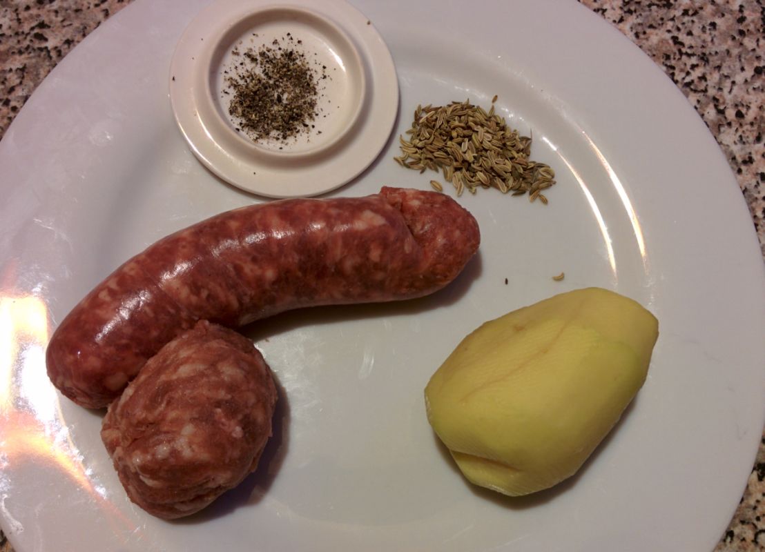 Se il finocchio è troppo forte, con il suo saporito retrogusto balsamico che ricorda la liquirizia, riducete da 1 grammo per hamburger a 0,75 grammi (1,5 totale). Io ne metto volentieri 4 grammi per 2 hamburger. Cercate di mantenere circa 1/3 almeno di patata nel totale di impasto, ma non più di un 40%: questa volta volete che la “patatosità” si senta nel sapore e nella consistenza, leggermente farinosa, ma non volete che domini sulla fisicità carnosa della grossa salsiccia. I semi di finocchio si può provare a macinarli prima nel mixer, ma non è grave se una buona parte rimangono interi nell’impasto.